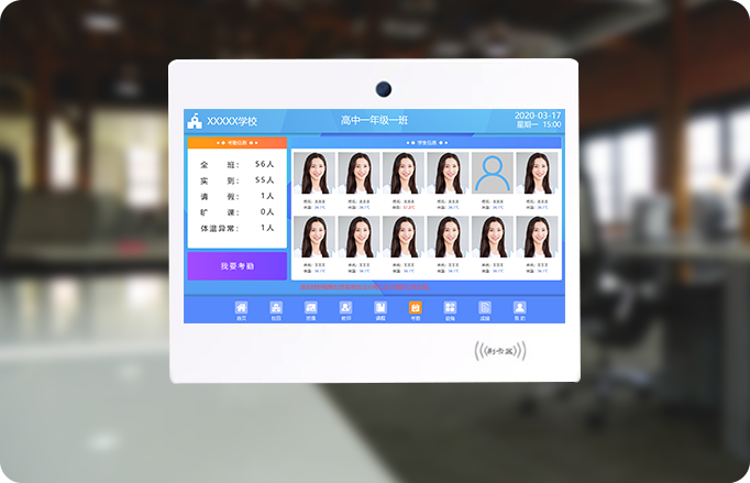 電子班牌可以準確對比學生身份,人臉識別率可達到99.9%。